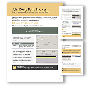 A practical guide to processing John Deere Electronic Parts Invoices in Gold, including invoice confirmation, DocStore storage and handling variances.